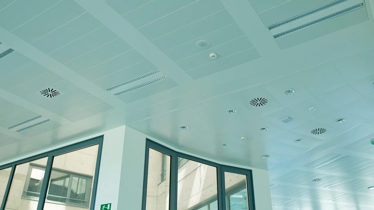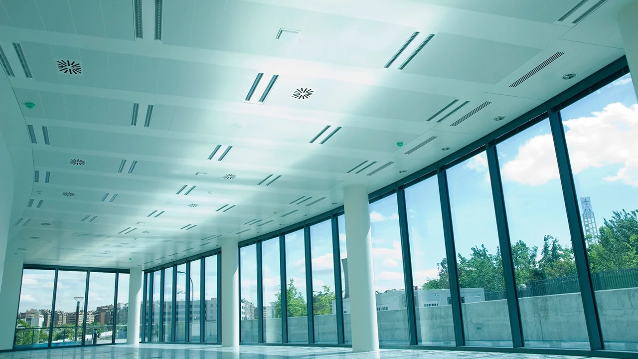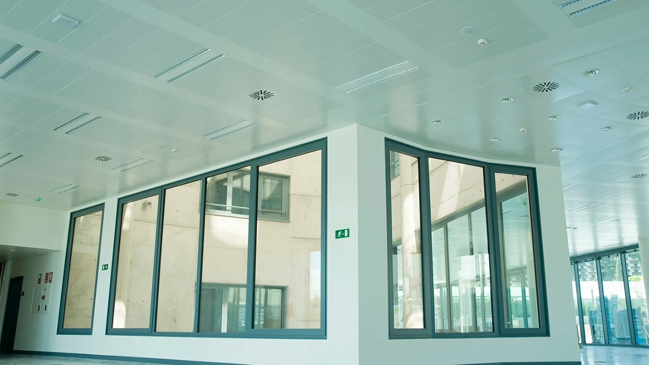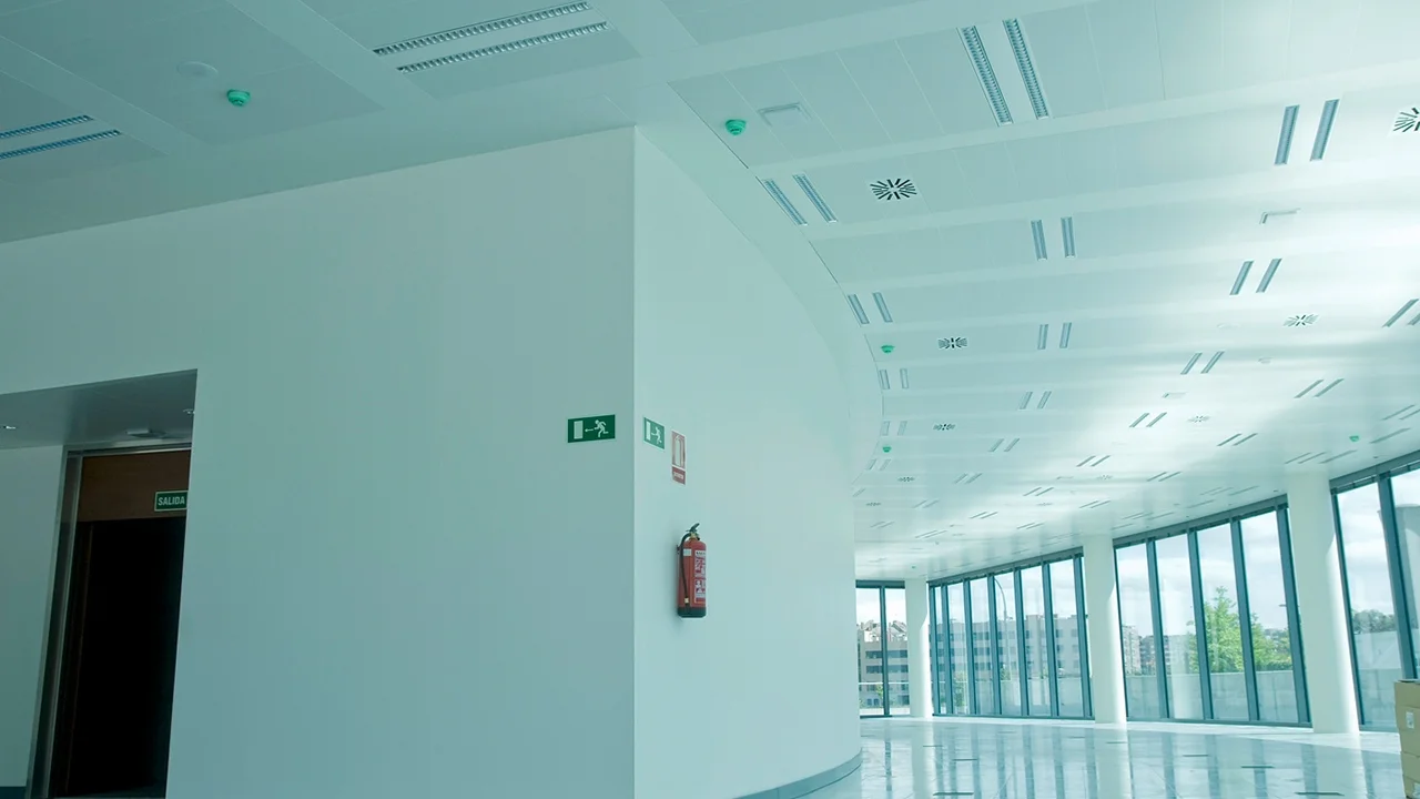 Proyecto Levitt. Levitt son oficinas en Sanchinarro con techos metálicos poslacados, perfectamente resuelto con fachadas con curvatura y piezas poligonales especiales para adaptarse a la geometría.
